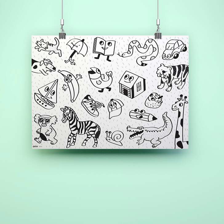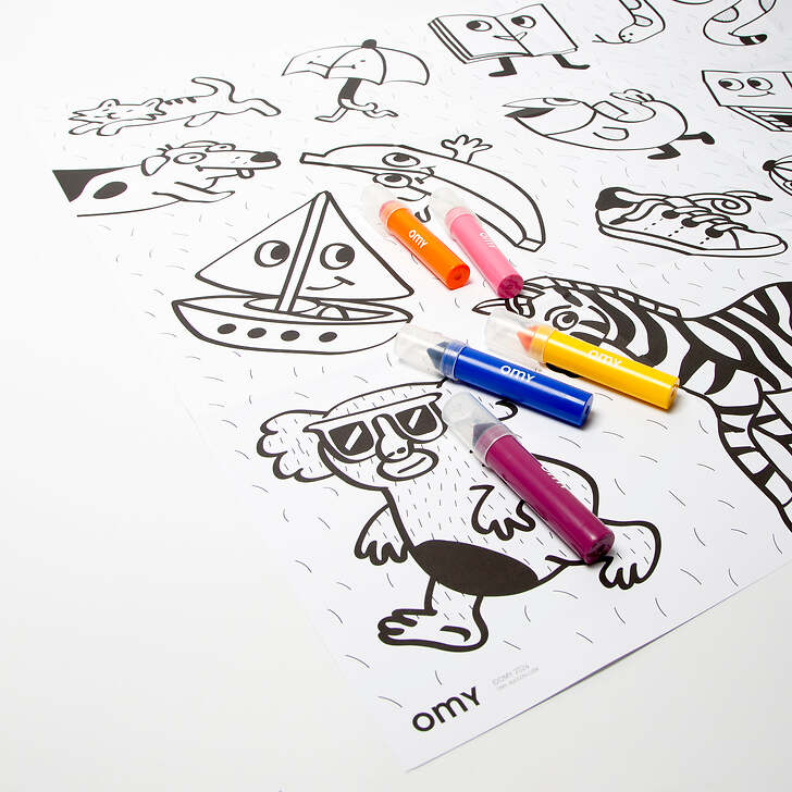 A giant poster with large illustrations to let little ones express their creativity with markers, crayons, or paint.