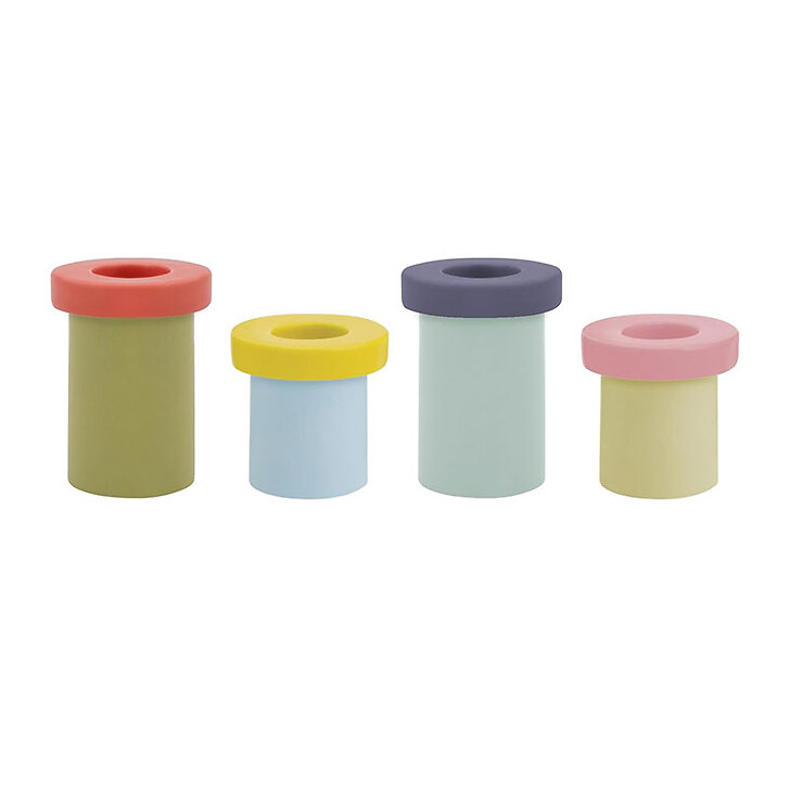 You simply have to like them: Made from porcelain, the matt glazed candle holders combine an unagitated design with colour combinations that immediately catch the eye. The colour-contrasting upper edge of the candle holders ensures a balanced shape and catches dripping wax. The set consists of four candle holders in two different heights, which can be arranged individually or as a group to create a decorative element in the home that is certainly not commonplace.