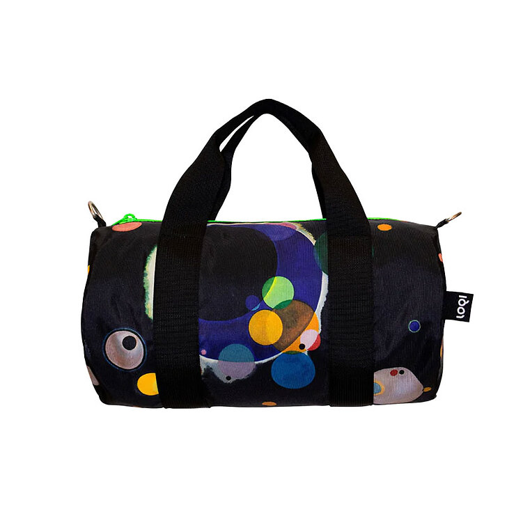 Step into Kandinsky's cosmos with this recycled weekender, where harmonious circles echo the rhythm of abstract art. Inspired by music, Kandinsky left his law career after experiencing Wagner's "Lohengrin" at the Bolshoi Theater. "Violins, deep basses, and wind instruments... in my mind, I saw all my colours, wild lines painting themselves before me." This sleeve captures that artistic epiphany, blending vibrant art with function.