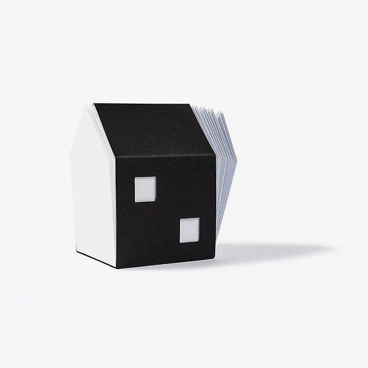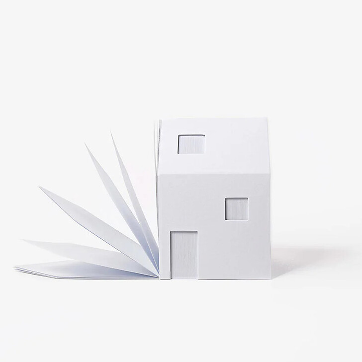 House of Notes is a notepad made of sheets of paper cut out and assembled in the shape of a house.