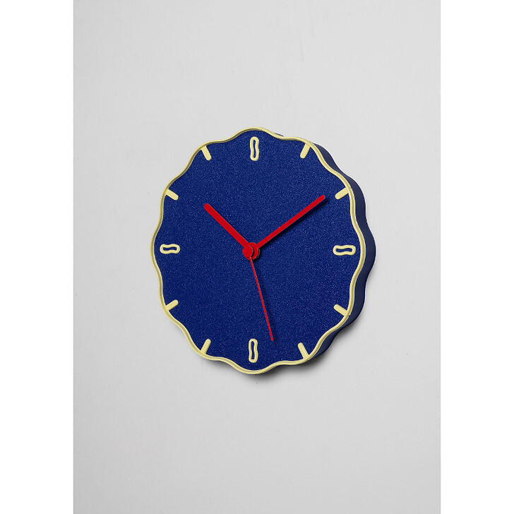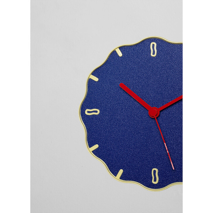 Margherita is a wall clock with a fluid, graphic design. Its dial is distinguished by an undulating shape, which breaks with classic clock forms and creates a soft, organic visual effect.