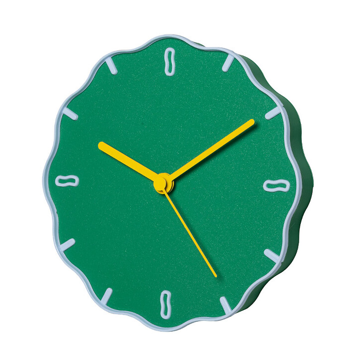 Margherita is a wall clock with a fluid, graphic design. Its dial is distinguished by an undulating shape, which breaks with classic clock forms and creates a soft, organic visual effect.