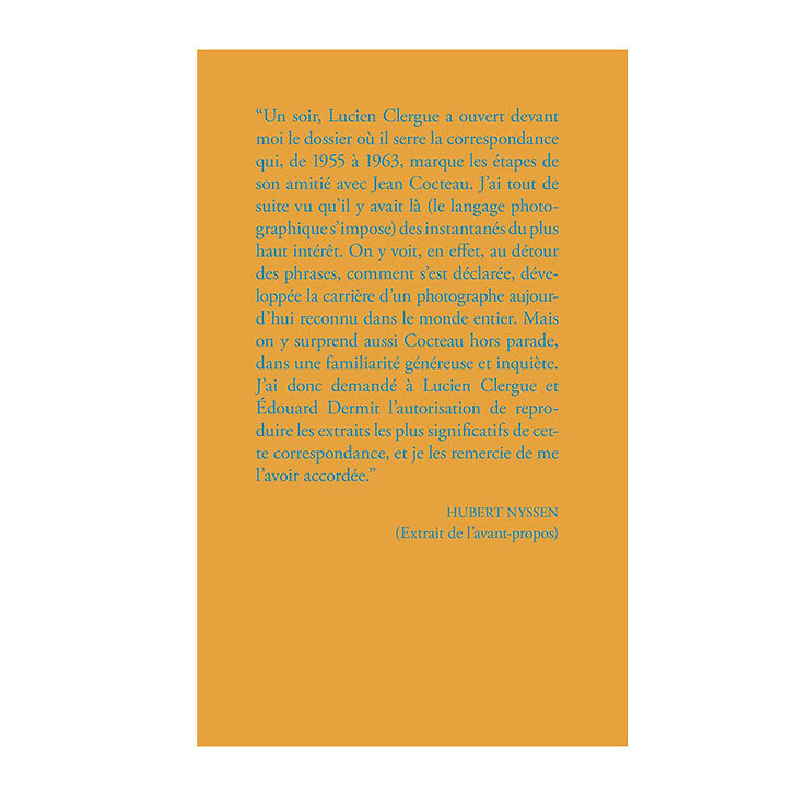 "One evening, Lucien Clergue opened in front of me the file where he hugs the correspondence which, from 1955 to 1963, marks the stages of his friendship with Jean Cocteau. I immediately saw that there were (photographic language is needed) snapshots of the highest interest. It shows, in fact, in the sentences, how the career of a photographer has developed throughout the world.