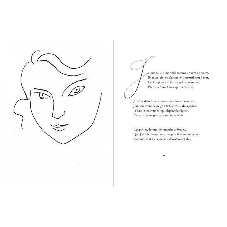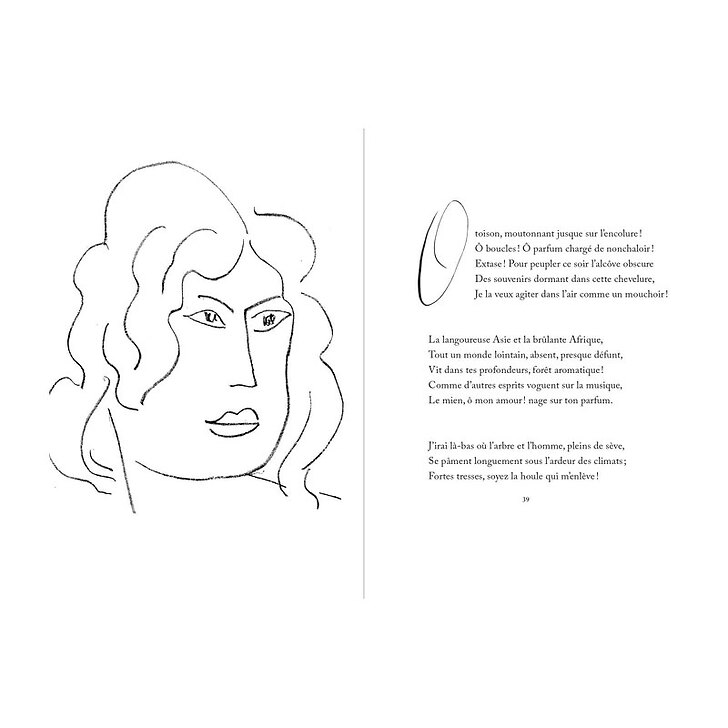 By choosing himself the poems of this edition, Matisse delivers his vision of the Flowers of evil, radiating from the eroticism and creolity that the painter and the poet share. The book offers only faces, varied enough to embrace the intimate geography of this traveling poetry.