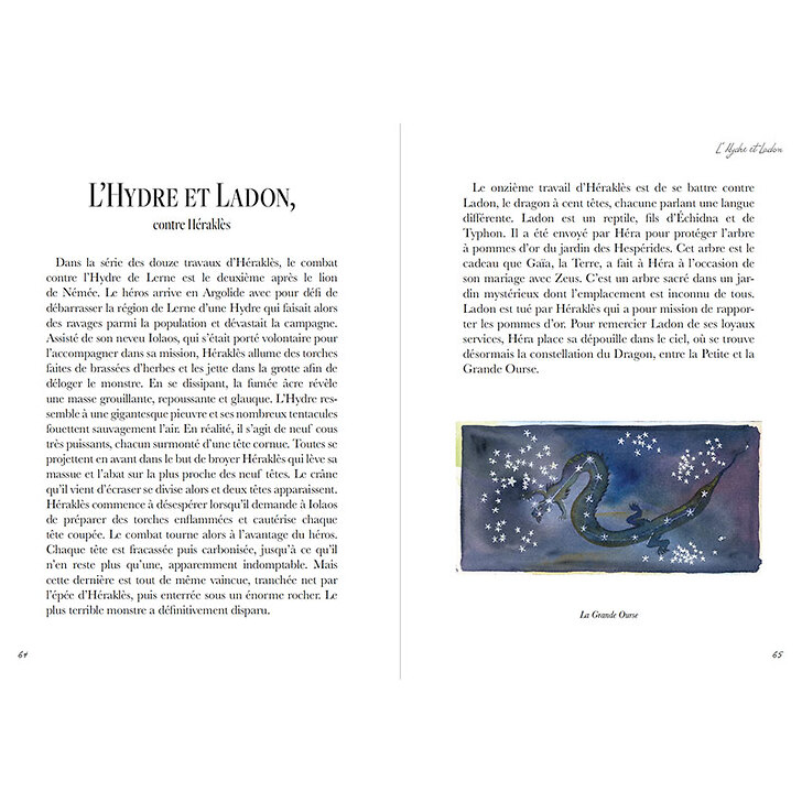 A dialogue between texts and watercolours evoking the symbolism of the dragon, which expresses power, strength and courage, as well as, in certain cultures, chaos. In others, this symbol is associated with the figures of the protector and guardian, thus conveying the notions of knowledge...