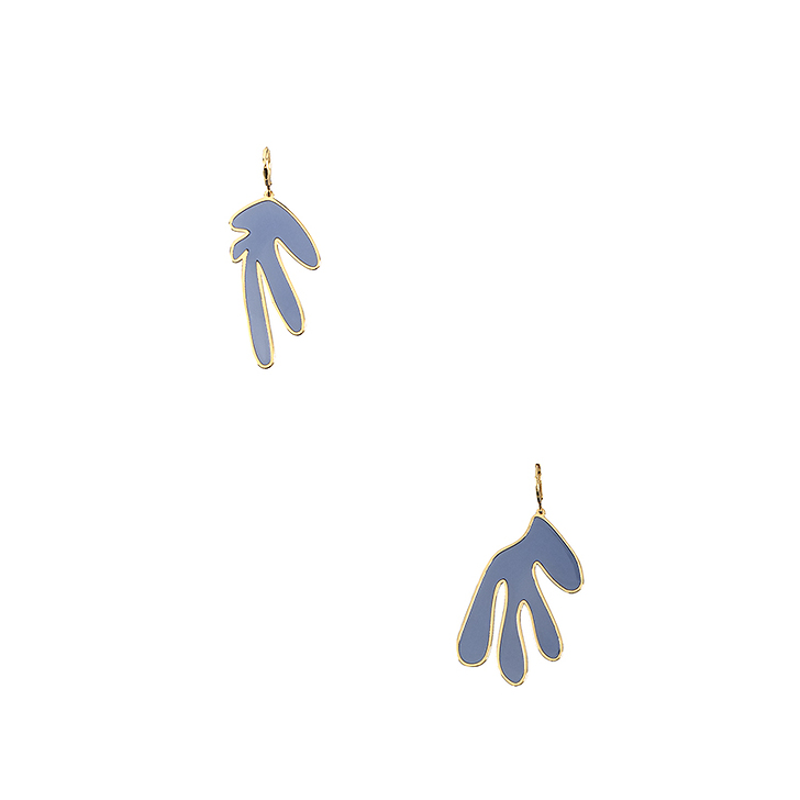 These blue asymmetric earrings are inspired by the work The Sheaf (1953) by Henri Matisse.