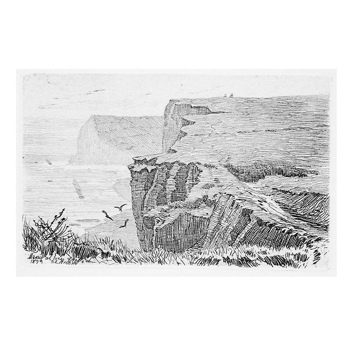 He stayed in particular in Mesnil-Val, a picturesque town near the mouth of the Bresle River, which cuts through the great cliffs of the Pays de Caux. There he engraved the cliffs of the coast.