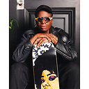 The subject portrayed in this solo edition is no different. She breaks the fourth wall with a nonchalant gaze. Her makeup and jewelry are bold, complimenting the vibrant pattern in the background. Its design is a personal nod to Mickalene THOMAS' childhood, sourcing its inspiration from the textures and colors which accompanied it.