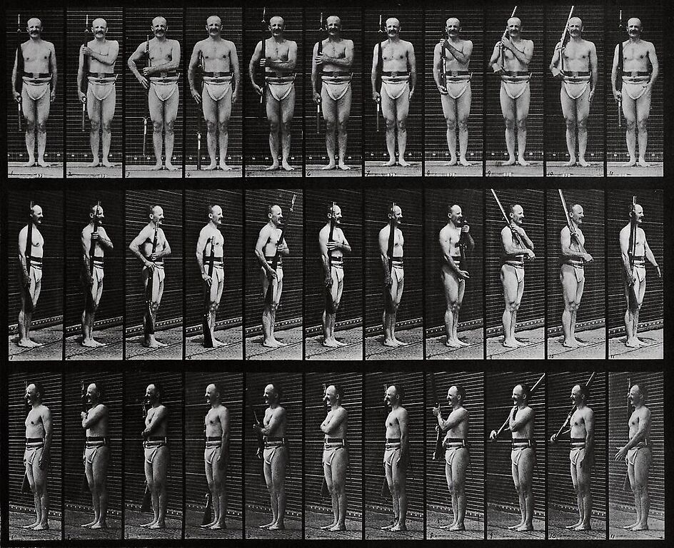 Animal Locomotion: Man In Pelvis Cloth Positioning Bayonet (acrylic panels)