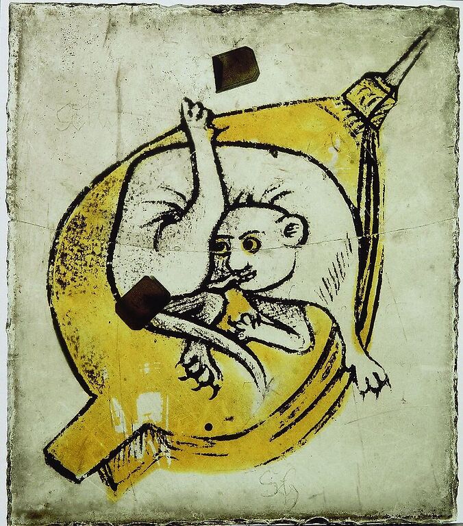 Original work by: Anonyme Original height: 14.00 cm Original width: 12.00 cm Period: 16e siècle, Renaissance (période) Technic: jaune d'argent Anonyme - Animal fantastique allongé sur un soufflet - jaune d'argent © RMN-Grand Palais (musée de la Renaissance, château d'Ecouen)