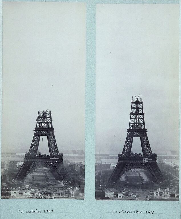 The construction of the Eiffel Tower seen from one of the towers of the Trocadero Palace
