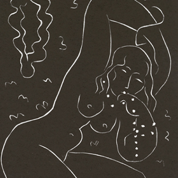 La Baigneuse au collier embodies the balance between sensuality and simplicity that characterizes the artist's work. The powerful contrast between the deep black and the light lines gives the composition a timeless intensity.