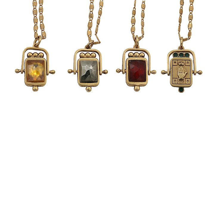 Double-sided pivot necklace in brass with a 1-micron 999/1000 gold plating and semi-precious stones.