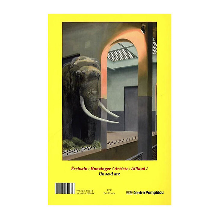 A fictional dialogue between five characters, including the author, who discuss a work by Gilles Aillaud depicting a locked elephant with a broken defense. The symbolic scope of art, representation or behavior towards animals are all elements addressed.