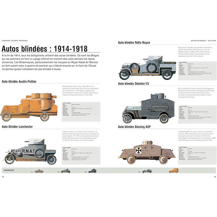 Organized chronologically and typologically, this encyclopedia presents more than a thousand tanks and armored vehicles built since the First World War. For each model, a plug and technical drawings on the armament, the crew, the driving power, the dimensions, the weight, the speed or the autonomy are proposed.