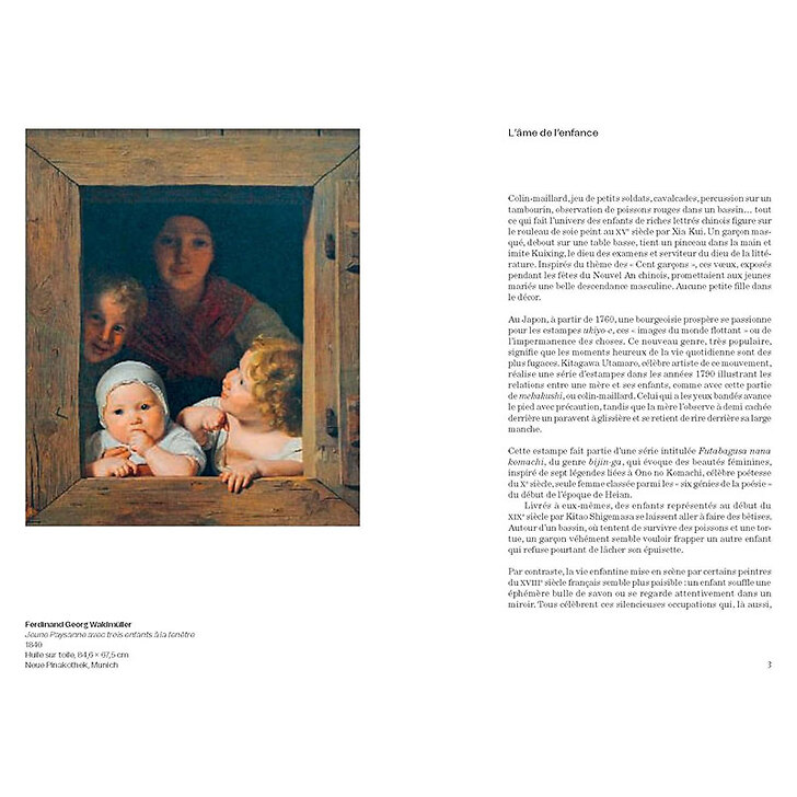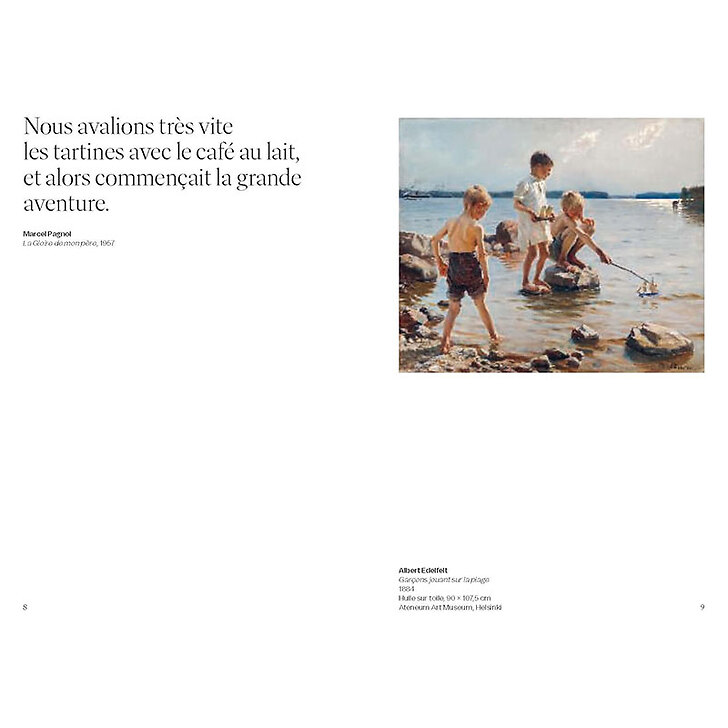 Childhood, through the emotions and memories so intense that characterize it, is an exciting object of study for artists. Here are collected paintings, sketches or photographs signed by Mary Cassatt, Frida Kahlo or Lewis Hine. Selected quotations and literary extracts respond to them, in a universal and sensitive dialogue.