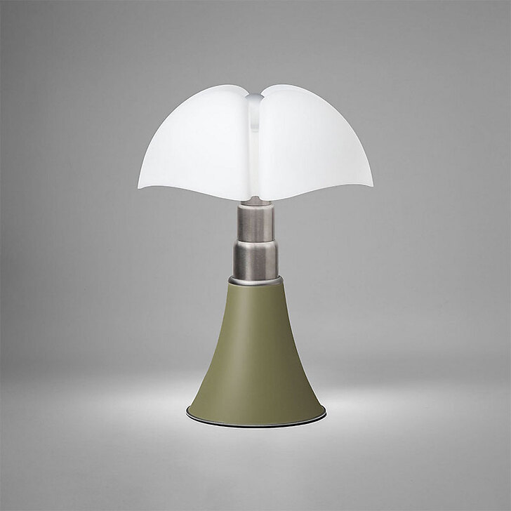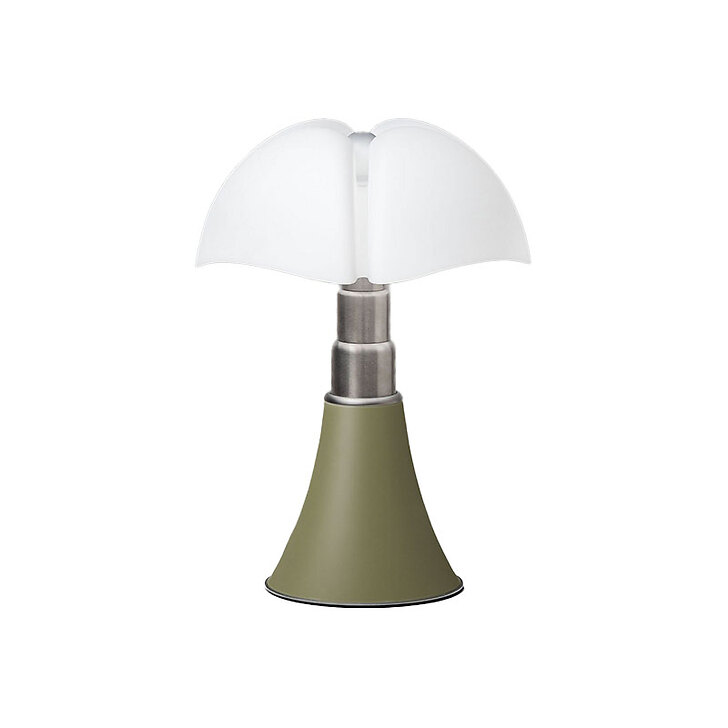 To celebrate the 40th anniversary of the Musée d'Orsay, the Pipistrello lamp is presented in a refined special edition. The aluminum cone and knob are finished in a distinctive green shade inspired by the architectural details of the museum's interior. It features an opal white methacrylate diffuser, a satin-finished stainless steel telescopic stem, and a chrome-plated metal ring and base. The lamp is fitted with an LED light source and plug-in power supply.