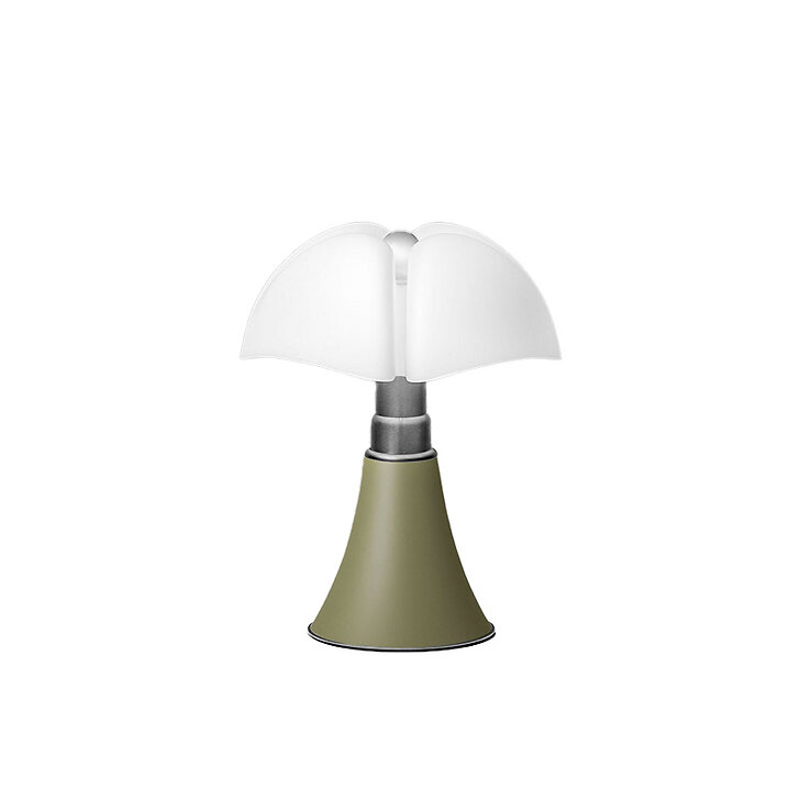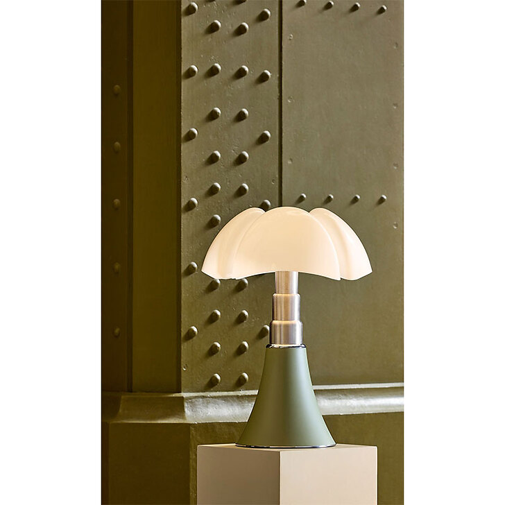 To celebrate the 40th anniversary of the Musée d'Orsay, the Pipistrello lamp is presented in a refined special edition. The aluminum cone and knob are finished in a distinctive green shade inspired by the architectural details of the museum's interior. It features an opal white methacrylate diffuser, a satin-finished stainless steel telescopic stem, and a chrome-plated metal ring and base. The lamp is fitted with an LED light source and plug-in power supply.