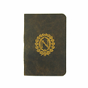 A beautiful small notebook with a soft leather cover with one of the Napoleonic symbols, the letter N, surrounded by a laurel crown.