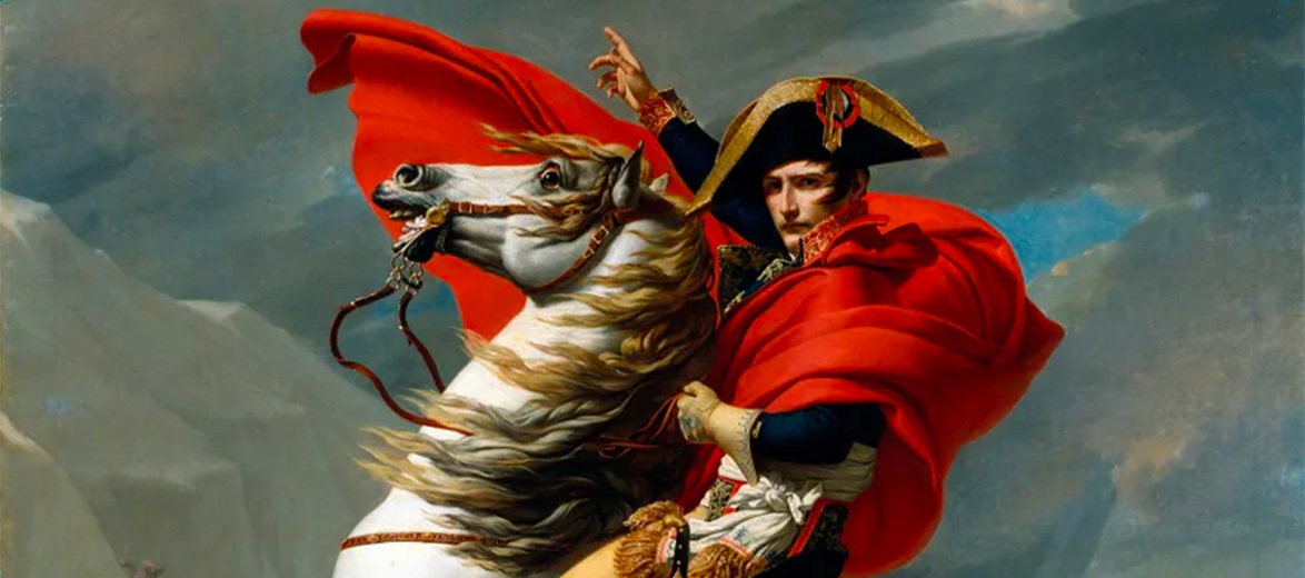 Fascinated by Napoleon Bonaparte, the artist produced The Coronation of Napoleon (1805-1807), Napoleon Crossing the Alps (1805) and Napoleon in his Study (1812). He became an official painter of the Empire, before exiling himself in Brussels.