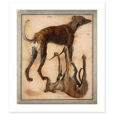 Canvas without frameTwo hunting dogs attached to a stump (canvas without frame)