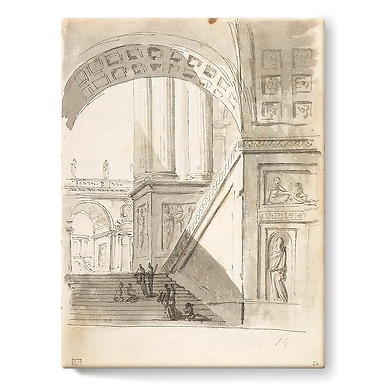Stretched CanvasTerrace garden, animated with figures with a round temple (stretched canvas)