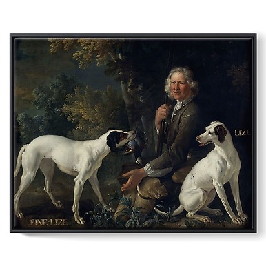 Portrait of the gamekeeper La Forêt and Fine-Lise and Lise, two dogs from the royal pack oudry (framed canvas)