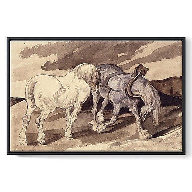 Cheval de profil à gauche et deux femmes retenant un cheval, étude pour Sémiramis construisant Babylone (framed canvas)