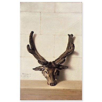 Tête de cerf bizarre sur un mur de pierre, signé et daté en bas à droite (acrylic panels)