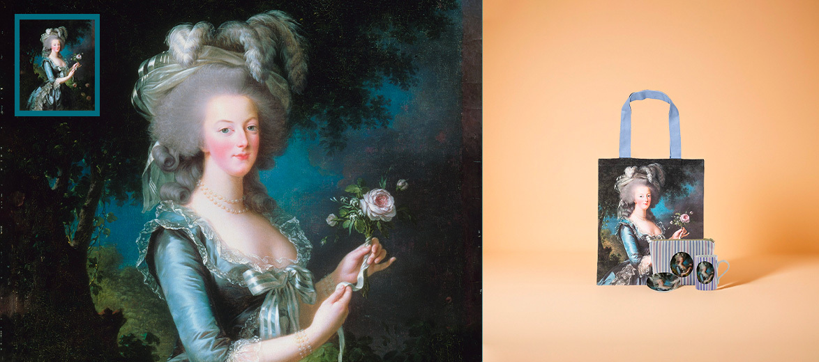 La ligne d'accessoires inspirée du célèbre portrait de Marie-Antoinette à la rose d'Élisabeth Louise Vigée Le Brun vous propose une sélection raffinée d'objets du quotidien sublimés par ce chef-d'œuvre de 1783.