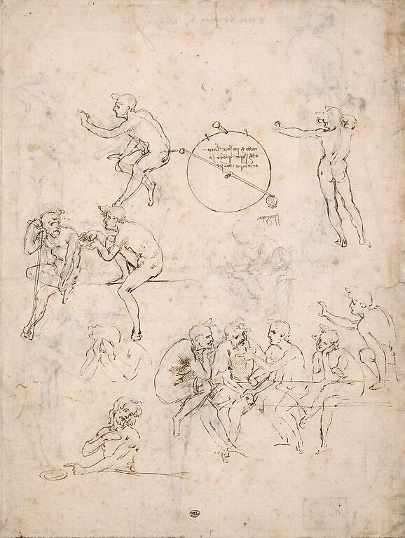 Œuvre de : Léonard De Vinci Études pour une Cène et différents personnages, une Vierge à l'Enfant et un hygromètre, Léonard De Vinci, vers 1480-1481 © Photo Rmn-GP (museé du Louvre) - M. Urtado I © Rmn-Grand Palais, Paris 2019