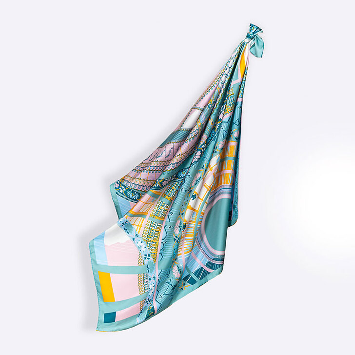 Carré de soie Sous le ciel de Paris - Réséda Turquoise
