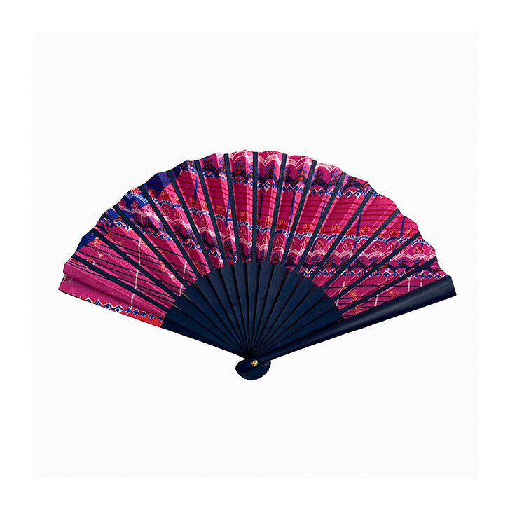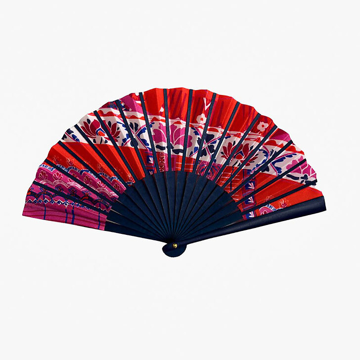 Photo non contractuelle - chaque éventail est unique, réalisé à partir de chutes de tissu aux motifs variés.