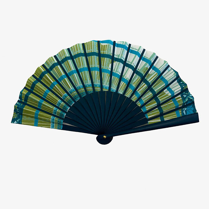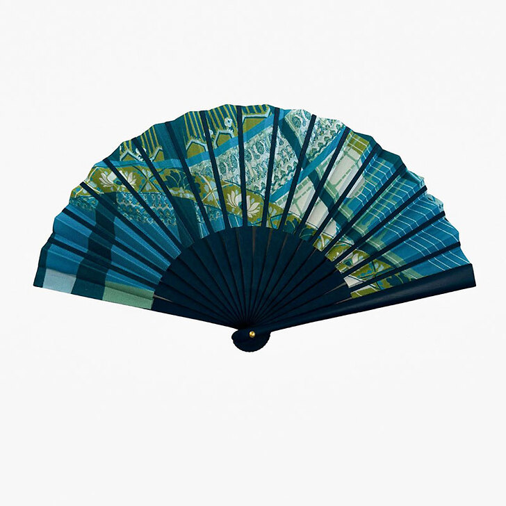Photo non contractuelle - chaque éventail est unique, réalisé à partir de chutes de tissu aux motifs variés.