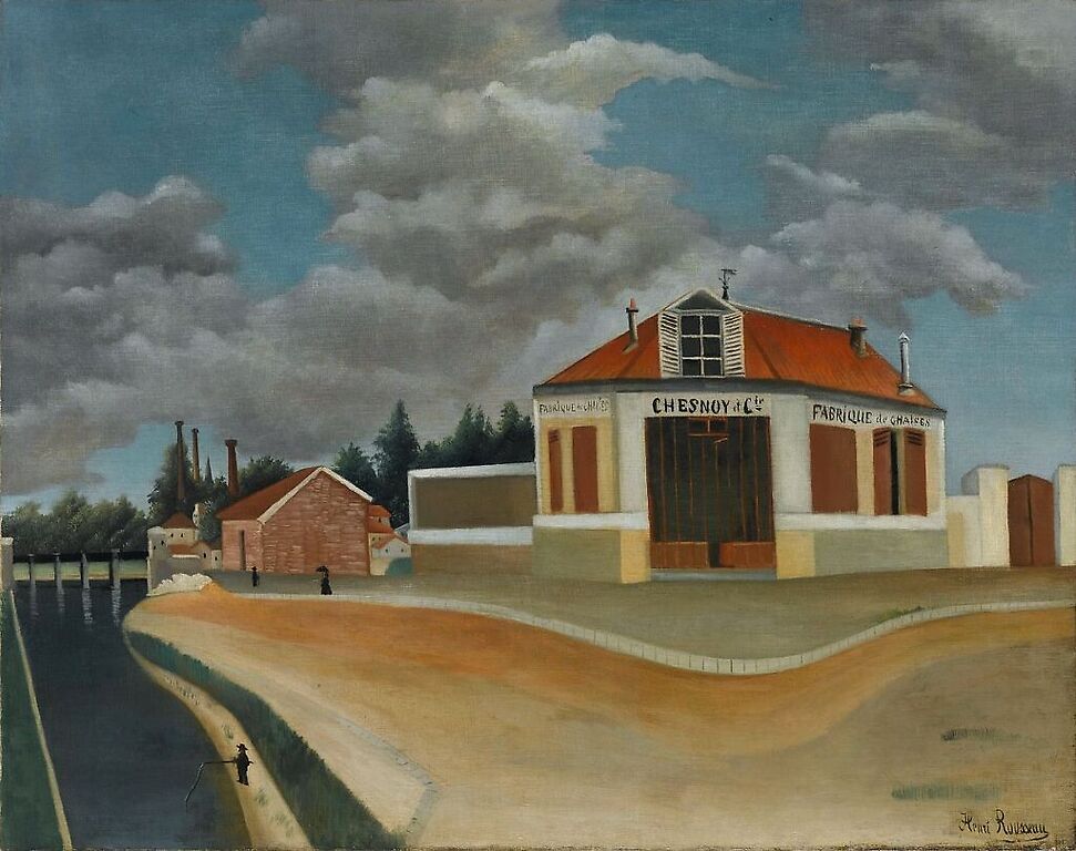 Œuvre de : Rousseau Henri, Le Douanier Rousseau Hauteur de l'original : 73,00 cm Largeur de l'original : 92,00 cm Période : 20e siècle - Europe (période) - période contemporaine de 1789 à 1915 Technique : huile sur toile Rousseau Henri, Le Douanier Rousseau - La Fabrique de chaises à Alfortville - huile sur toile © RMN-Grand Palais (Paris, musée de l'Orangerie)