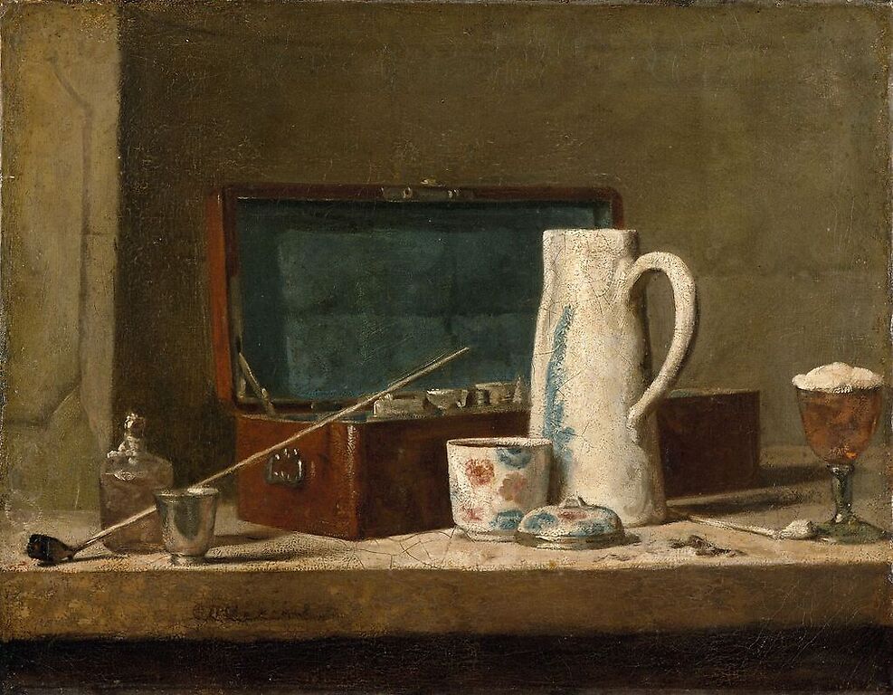 Œuvre de : Chardin, Jean Baptiste Siméon Hauteur de l'original : 32,00 cm Largeur de l'original : 42,00 cm Période : 18e siècle, période moderne (Europe occidentale) Technique : huile sur toile Chardin, Jean Baptiste Siméon - Pipe et vase à boire dit la Tabagie - huile sur toile © RMN-Grand Palais (musée du Louvre)
