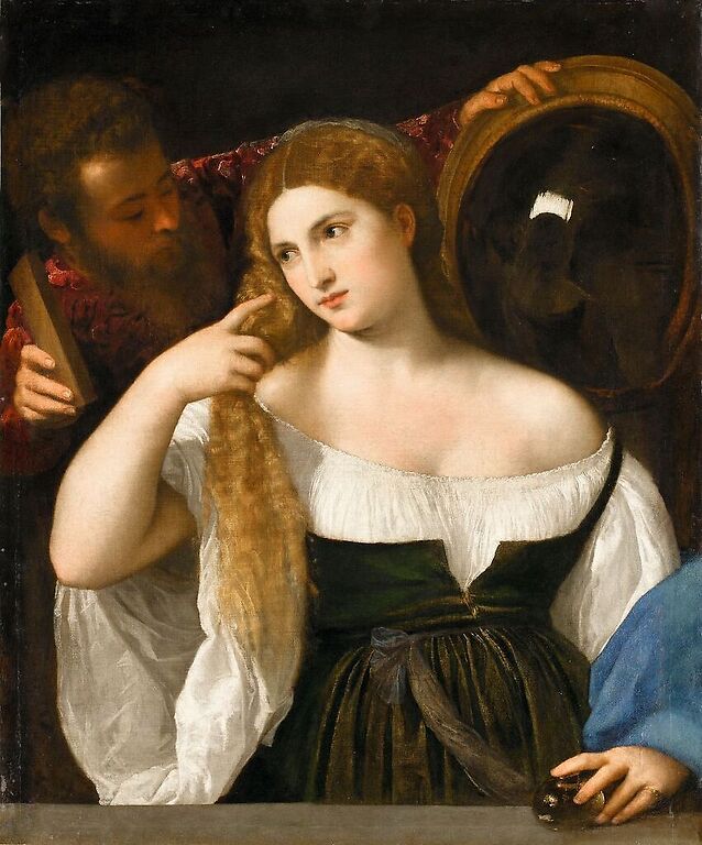 Œuvre de : Titien (dit), Vecellio Tiziano Hauteur de l'original : 93,00 cm Largeur de l'original : 76,00 cm Période : Renaissance (période), 16e siècle Technique : huile sur toile Titien (dit), Vecellio Tiziano - Portrait d'une femme à sa toilette - huile sur toile © RMN-Grand Palais (musée du Louvre)