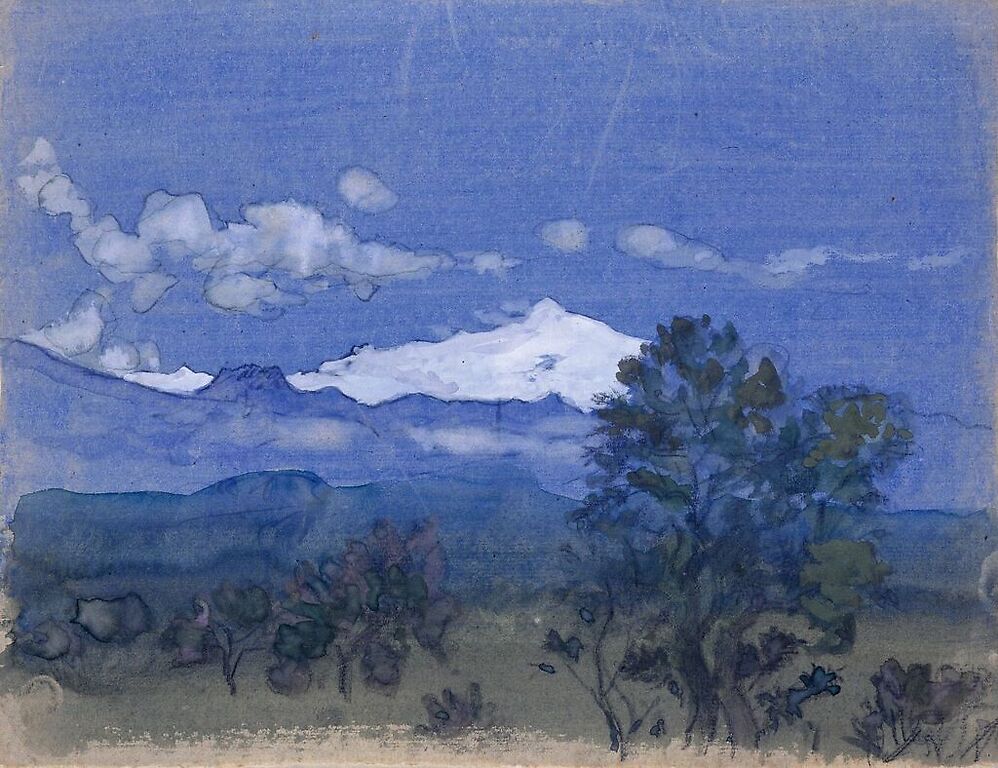 Œuvre de : Davies Arthur Bowen Hauteur de l'original : 24,00 cm Largeur de l'original : 31,20 cm Période : 20e siècle, période contemporaine (Amérique) Technique : gouache Davies Arthur Bowen - Chaîne de montagnes enneigées - gouache © RMN-Grand Palais (Château de Blérancourt)