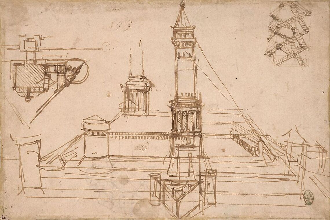 Œuvre de : Léonard De Vinci Étude de fortifications, Léonard De Vinci, vers 1485-1490 © Photo Rmn-GP (museé du Louvre) - M. Urtado I © Rmn-Grand Palais, Paris 2019