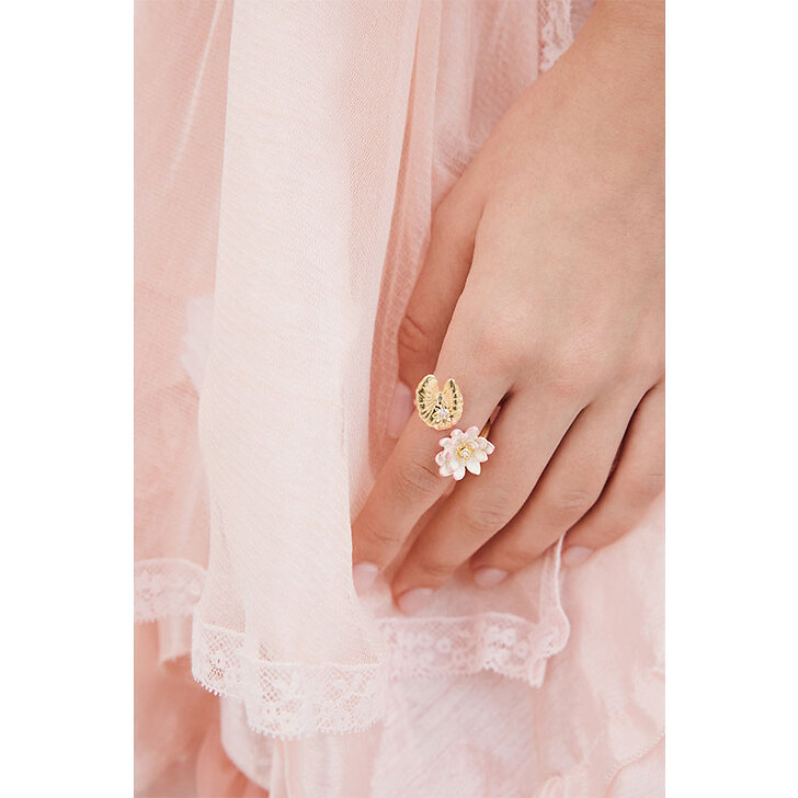 Bague ajustable Nymphéa rose et lotus doré