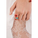 Bague ajustable pierre ronde bleue et Coquelicot