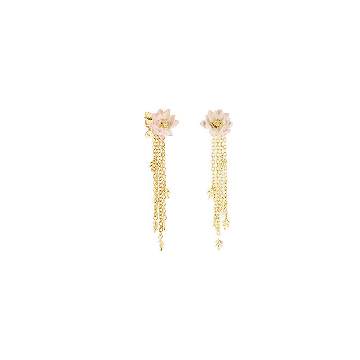 Boucles d'oreilles pendantes dorées Nymphéa rose