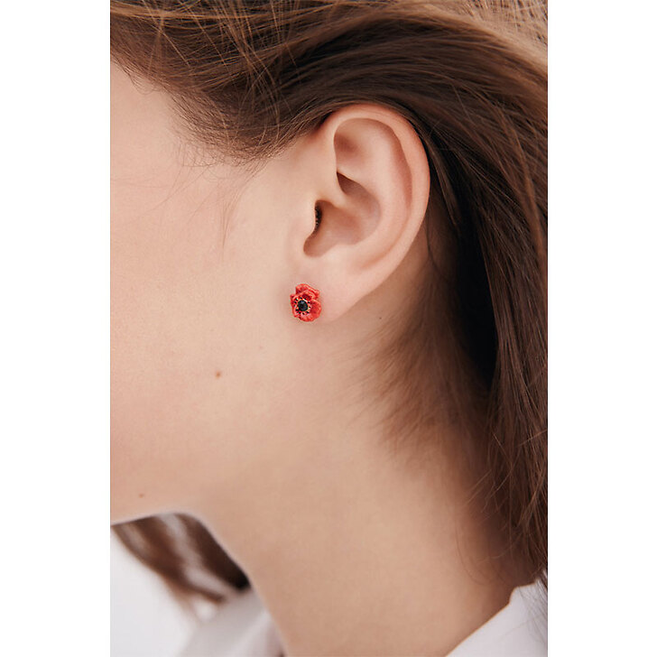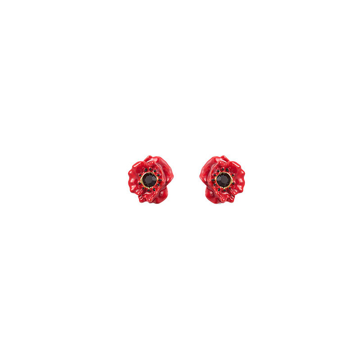 Boucles d'oreilles tiges Coquelicot rouge et cristal noir
