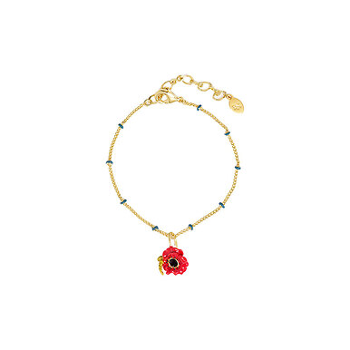 Collier pendentif médaille en laiton doré à l'or fin orné d'un coquelicot rouge peinte à la main, ornée d'un cristal noir en son centre. Chaine perlée en laiton doré à l'or fin.