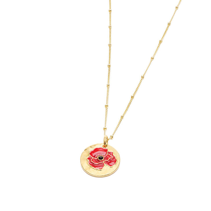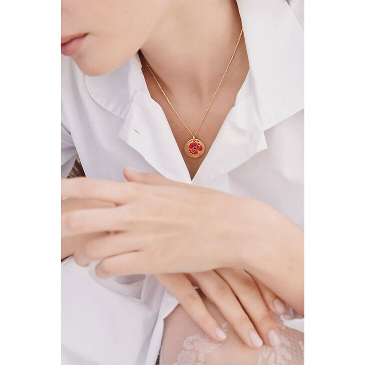 Collier pendentif médaille dorée Coquelicot