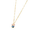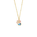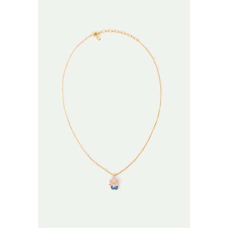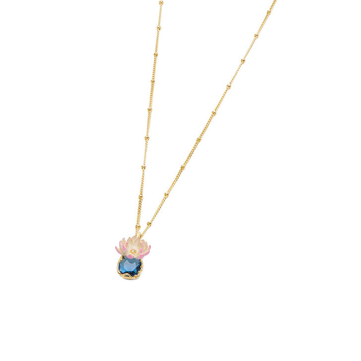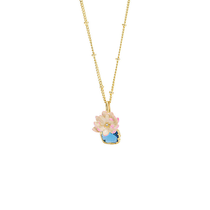 Collier pendentif Nymphéa rose et pierre ronde bleue