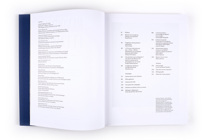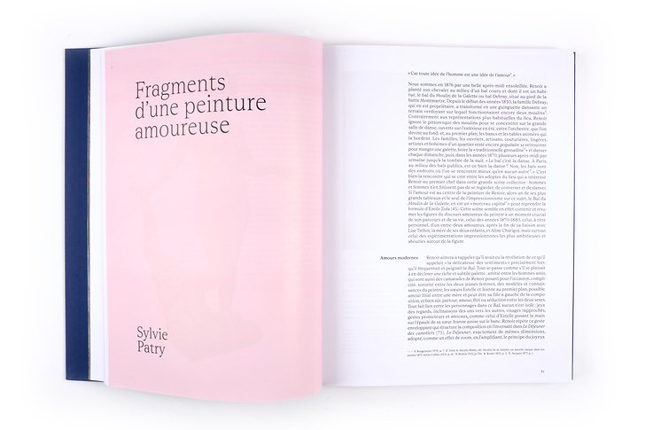 Ce catalogue prouve à quel point l'amour, compris comme force fondamentale liant les êtres entre eux et à la nature, guide l'inspiration de Renoir : l'artiste définissait la peinture comme « une chose aimable, joyeuse et jolie » et il n'a eu cesse en effet de développer dans ses tableaux une vision heureuse, pudique et tendre de l'amour.