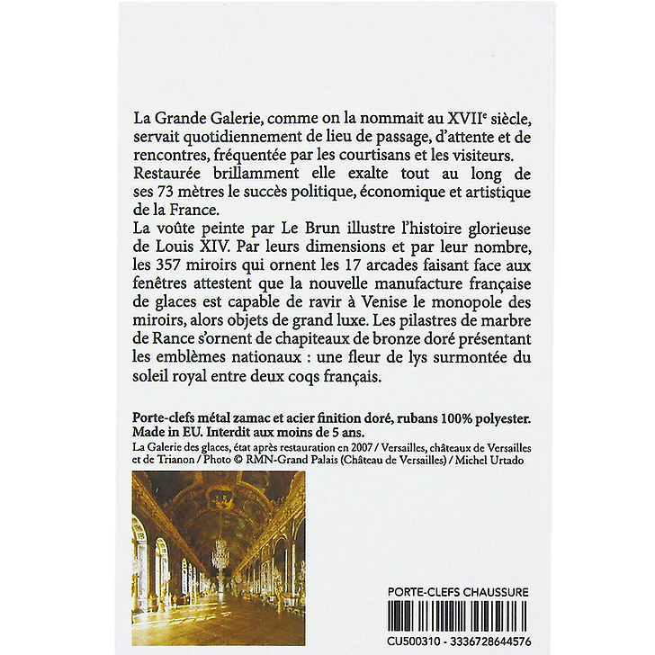 La voûte peinte par Le Brun illustre l'histoire glorieuse de Louis XIV. Par leurs dimensions et par leur nombre, les 357 miroirs qui ornent les 17 arcades faisant face aux fenêtres attestent que la nouvelle manufacture française des glaces est capable de ravir à Venise le monopole des miroirs, alors objets de grand luxe.