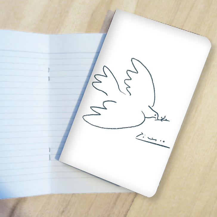 Le motif de ce carnet est inspiré du célèbre dessin de Pablo Picasso, La Colombe de la Paix réalisé vers 1950.