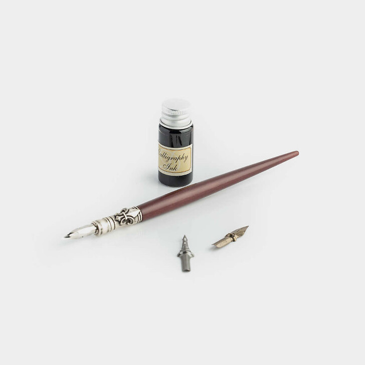 Stylo de calligraphie en bois de bouleau avec une pointe décorée fleur de lys, adapté à la calligraphie.